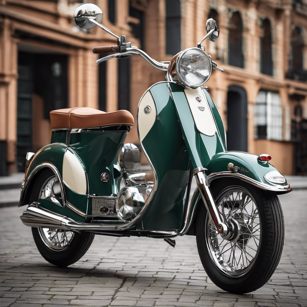 Design Rationale: The RetroRevival Cruiser combines nostalgia with modern functionality, offering a unique blend of vintage aesthetics and contemporary features. The design revolves around a vintage-inspired moped, featuring a classic step-through frame that harks back to the iconic designs of the past. Chrome accents embellish the exterior, adding a touch of elegance and highlighting the timeless appeal of the cruiser. The leather-clad seat not only enhances comfort but also adds a luxurious and nostalgic element to the overall design.